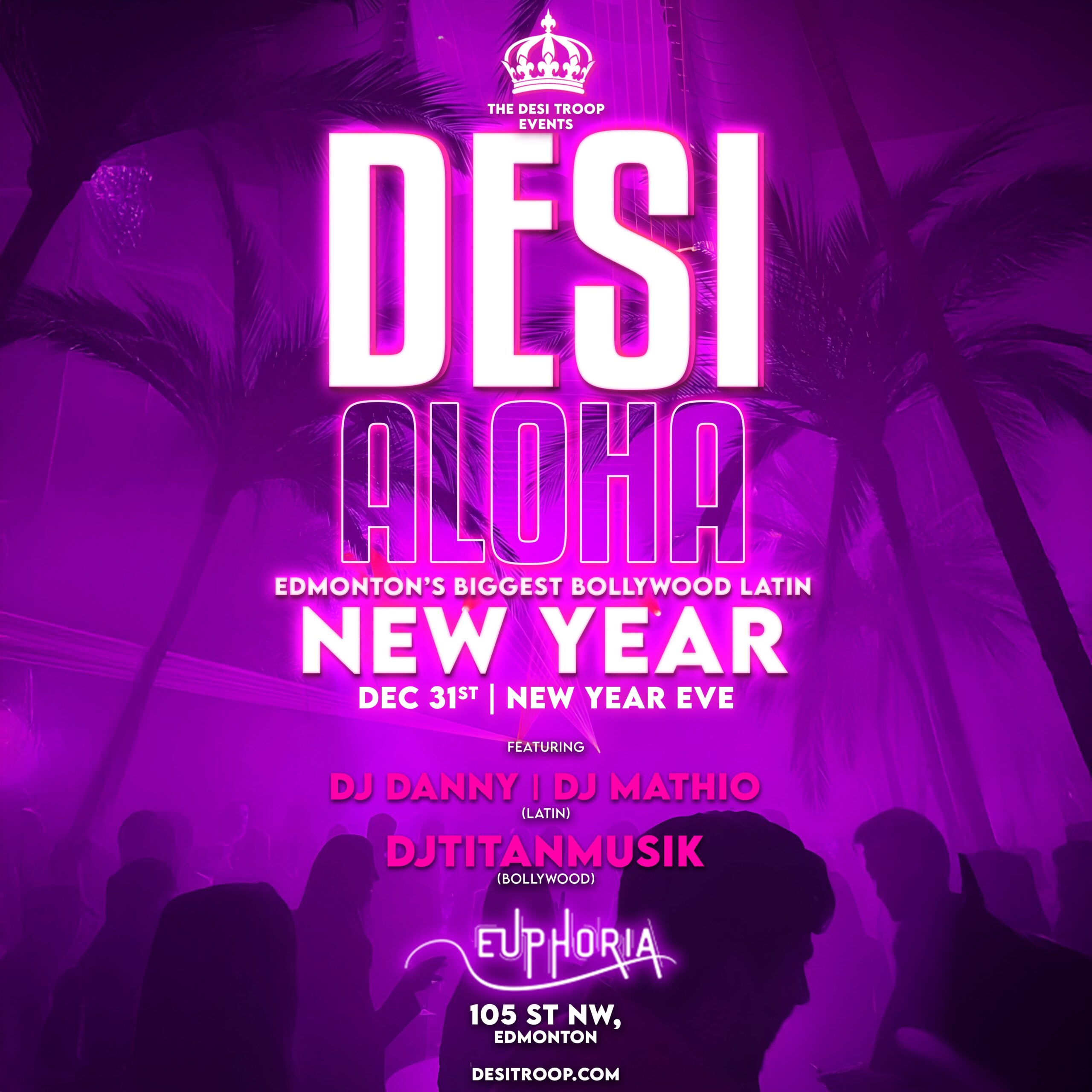 DESI ALOHA is landing at Euphoria – a Bollywood x Latin New Year’s Eve experience by The Desi Troop Events, Canada’s hottest entertainment courier.