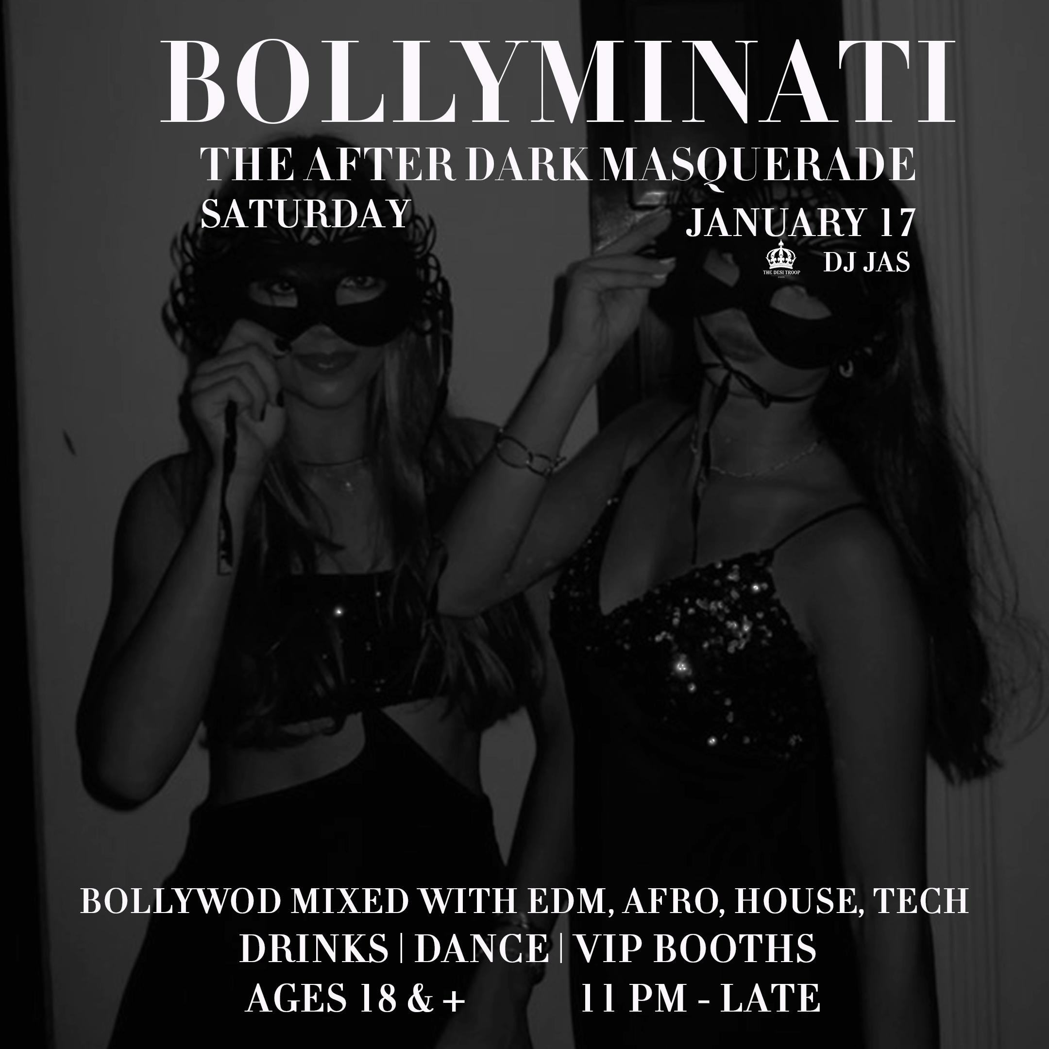 Bollyminati — The After Dark Masquerade is a late-night, mask-on, lights-low Bollywood experience where the energy feels a little more mysterious, a little more dangerous, and a lot more addictive.